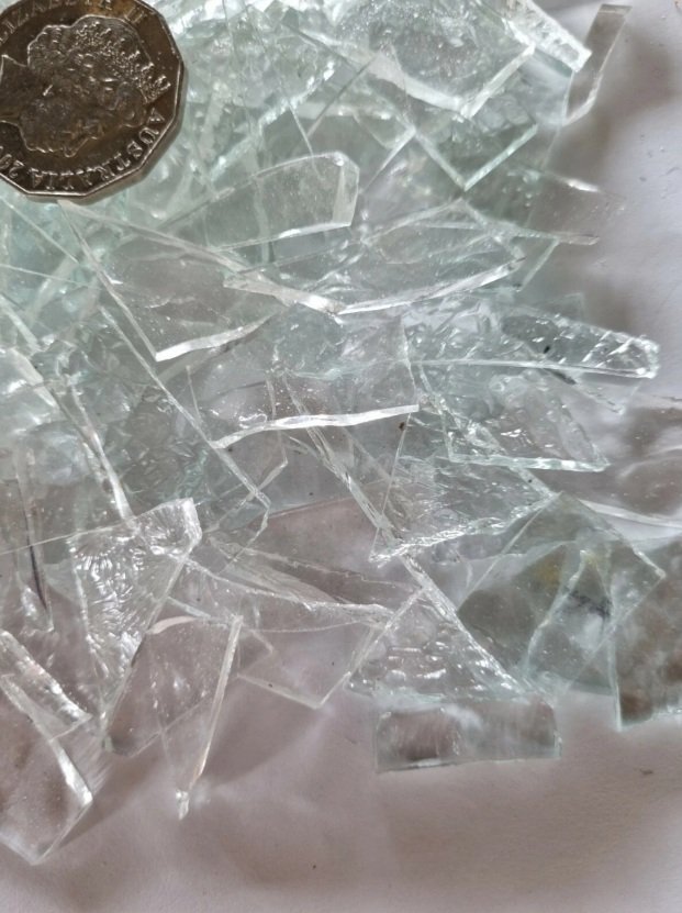 Assorted textures of small pieces of clear glass in assorted sizes.