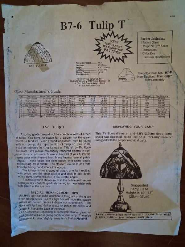 Worden B7-6 Tulip T Lamp Pattern. Packet is open but pattern is unused.